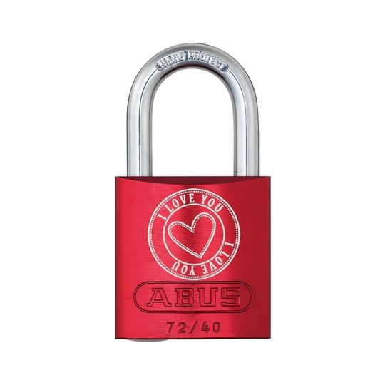 ABUS Vorhangschloss LoveLock 5 72/40; Ausführung: 6-stiftig; Material Schlosskörper: Aluminium; Einsatzbereich: Allgemeiner Verschluss; Basis: Vorhangschloss; Verriegelungsart: automatisch ohne Schlüssel,doppelte Verriegelung; Schließungsart: Präzisions-Stiftzylinder; Funktion: verschiedenschließend; Schlüssel Anzahl: 2; Material Bügel: Aluminium; Gehäusebreite: 39 mm; Oberfläche Bügel: NANO PROTECT™-Beschichtung; Material Zylinder: Messing; lichte Bügelweite: 20 mm; lichte Bügelhöhe: 27 mm; Bügeldurchmesser: 6,5 mm; Gehäusetiefe: 19 mm; Gesamthöhe: 74 mm; Schlüsselausführung: Profilschlüssel; Material Schlüssel: Messing; Anwendung: Brücken,Zäune; Sicherheitslevel: 6; Verpackungsart: Einzelkarton; Eigenschaft: mit Anti-Pick-Stift-System,Zylinder austauschbar,gravierbar; Farbe Schlosskörper: rot; besonders stabile Verriegelungstechnik durch Stahlkugeln: Ja