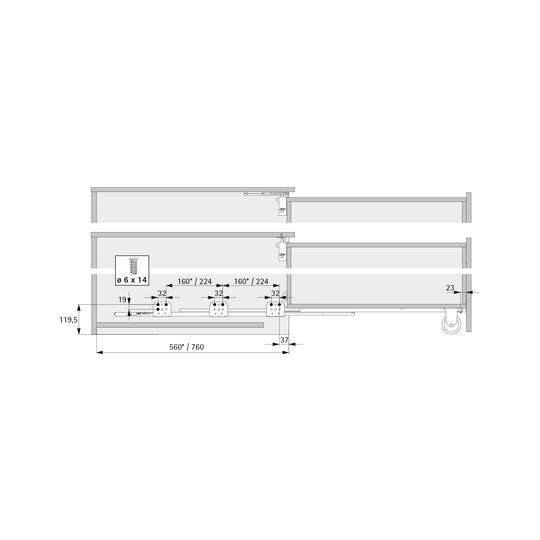 Auszugsführung Quadro Compact (Garnitur), links und rechts