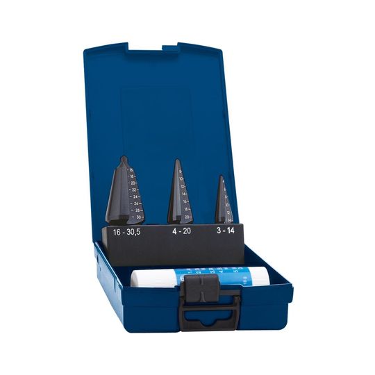 FORUM Präzisions-Blechschälbohrer-Satz (Schälaufbohrer), Oberfläche TiAIN-beschichtetIn Kunststoffkassette, geordnete und geschützte Aufbewahrung inklusive einer Tube Bohrpaste.Hinweis: Zur Erhöhung der Standzeiten empfehlen wir den Einsatz der Bohrpaste (Bestell-Nr. 66 0500 1051).