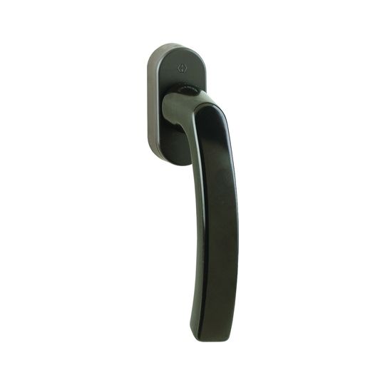 HOPPE Fenstergriff Luxembourg 099/US952; Material: Aluminium; Vierkant: 7 mm; Befestigungsart: verdeckt verschraubt; Befestigungstechnik: mit Stütznocken; Lieferung: mit Schrauben,mit Vierkantstift; Basis: Fenstergriff; Ausführung: VarioFit®; Farbton: dunkelbraun seidenglänzend beschichtet; Stift vorstehend: 32-42 mm; Rastung: 90°; Funktion: mit selbsttätiger Verriegelung; Technik: Secustik®; DIN-Richtung: DIN Links-Rechts; Einsatzbereich: Drehkipp; Anwendung: für nach innen öffnende Fenster und Fenstertüren; Griffform: L-Form; Grifflänge: 129 mm; Griffhöhe: 52 mm; Sockelausführung: mit ovaler Rosette; Sockelbreite: 31 mm; Sockelhöhe: 68 mm; Sockelstärke: 16 mm; Befestigungsabstand: 43 mm; Nockendurchmesser: 10 mm; Material Unterkonstruktion: Kunststoff; Norm: DIN EN 13126-3; Prüfung: RAL-GZ 607/9; Fensterwerkstoff: Holz,Aluminium,Kunststoff; Aufdruck: mit Logo; Zusatzinformation: integrierte Basis-Sicherheit