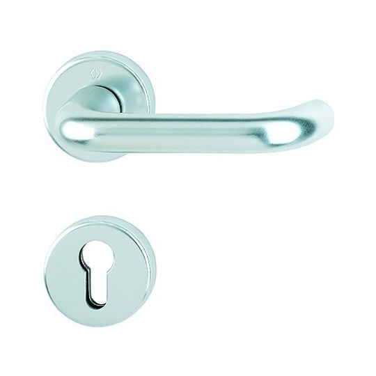 HOPPE Halbgarnitur Paris 138L/42/42S; Produkttyp: Halbgarnitur; Produkttyp (Hersteller): Halbgarnitur; Ausführung: Rosette; Befestigungsart Drückerrosette (innen): verdeckt verschraubt; Befestigungsart Schlüsselrosette (innen): verdeckt verschraubt; Befestigungstechnik: mit Stütznocken; Form Drückerrosette: rund; Form Schlüsselrosette (innen): rund; Vierkant: 8 mm; Material: Aluminium; Form Türgriff (innen): U-Form; Durchmesser Türgriff (innen): 18; Durchmesser Schlüsselrosette: 52 mm; Länge Türgriff (innen): 132; Höhe Türgriff (innen): 55; Durchmesser Drückerrosette (innen): 52 mm; Höhe Drückerrosette (innen): 9 mm; Höhe Schlüsselrosette (innen): 9 mm; Lagerung: wartungsfreies Gleitlager; Einsatzbereich: Zimmertür; Türart: Vollblatt; Türwerkstoff: Holz,Stahl; Anwendung: innen; Lochung: Profilzylinder gelocht; DIN-Richtung: DIN Links-Rechts; Farbe: silber; Farbton: naturfarben; Oberfläche: eloxiert; Ausführung Vierkant: ohne Stift