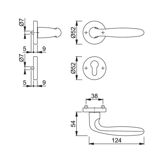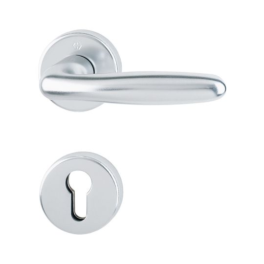 HOPPE Halbgarnitur Verona 1510/42/42S; Produkttyp: Halbgarnitur; Produkttyp (Hersteller): Halbgarnitur; Ausführung: Rosette; Befestigungsart Drückerrosette (innen): verdeckt verschraubt; Befestigungsart Schlüsselrosette (innen): verdeckt verschraubt; Befestigungstechnik: mit Stütznocken; Form Drückerrosette: rund; Form Schlüsselrosette (innen): rund; Vierkant: 8 mm; Material: Aluminium; Form Türgriff (innen): Design; Durchmesser Schlüsselrosette: 52 mm; Länge Türgriff (innen): 124; Höhe Türgriff (innen): 54; Durchmesser Drückerrosette (innen): 52 mm; Höhe Drückerrosette (innen): 9 mm; Höhe Schlüsselrosette (innen): 9 mm; Lagerung: wartungsfreies Gleitlager; Einsatzbereich: Zimmertür; Türart: Vollblatt; Türwerkstoff: Holz,Stahl; Anwendung: innen; Lochung: Profilzylinder gelocht; DIN-Richtung: DIN Links-Rechts; Farbe: silber; Farbton: naturfarben; Oberfläche: eloxiert; Ausführung Vierkant: ohne Stift