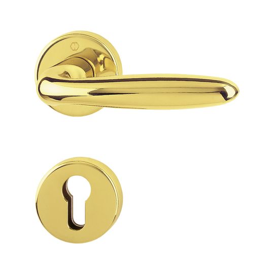 HOPPE Halbgarnitur Verona M151/42/42S; Produkttyp: Halbgarnitur; Produkttyp (Hersteller): Halbgarnitur; Ausführung: Rosette; Befestigungsart Drückerrosette (innen): verdeckt verschraubt; Befestigungsart Schlüsselrosette (innen): verdeckt verschraubt; Befestigungstechnik: mit Stütznocken; Form Drückerrosette: rund; Form Schlüsselrosette (innen): rund; Vierkant: 8 mm; Material: Messing; Form Türgriff (innen): Design; Durchmesser Schlüsselrosette: 52 mm; Länge Türgriff (innen): 122; Höhe Türgriff (innen): 53; Durchmesser Drückerrosette (innen): 52 mm; Höhe Drückerrosette (innen): 9 mm; Höhe Schlüsselrosette (innen): 9 mm; Lagerung: wartungsfreies Gleitlager; Einsatzbereich: Zimmertür; Türart: Vollblatt; Türwerkstoff: Holz,Stahl; Anwendung: innen; Lochung: Profilzylinder gelocht; DIN-Richtung: DIN Links-Rechts; Farbe: gelb; Farbton: messingfarben poliert-Resista®; Ausführung Vierkant: ohne Stift