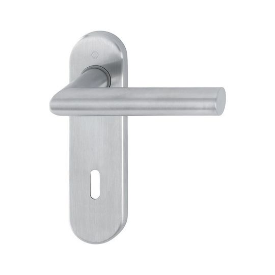 HOPPE Drückergarnitur Amsterdam E1400Z/353K; Produkttyp: Drückergarnitur; Produkttyp (Hersteller): Drückergarnitur; Ausführung: Kurzschild; Befestigungsart: verdeckt verschraubt; Befestigungstechnik: mit Stütznocken; Form: oval; Vierkant: 8 mm; Material: Edelstahl; Material Unterkonstruktion: Stahl; Form Türgriff (innen): Gehrung; Form Türgriff (außen): Gehrung; Durchmesser Türgriff (innen): 20 mm; Durchmesser Türgriff (außen): 20 mm; Länge Türgriff (innen): 125 mm; Länge Türgriff (außen): 125 mm; Höhe Türgriff (innen): 59 mm; Höhe Türgriff (außen): 59 mm; Schildbreite außen: 44 mm; Schildbreite innen: 44 mm; Schildlänge außen: 165 mm; Schildlänge innen: 166 mm; Schildstärke außen: 8 mm; Schildstärke innen: 8 mm; Lagerung: wartungsfreies Gleitlager; Einsatzbereich: Objekttür; Türart: Vollblatt; Türwerkstoff: Stahl,Holz; Norm: DIN EN 1906; Lochung: Buntbart gelocht; Entfernung: 72 mm; DIN-Richtung: DIN Links-Rechts; Farbe: grau; Farbton: edelstahl matt; Ausführung Vierkant: Vierkantstift; Türstärke min.: 35 mm; Türstärke max.: 45 mm
