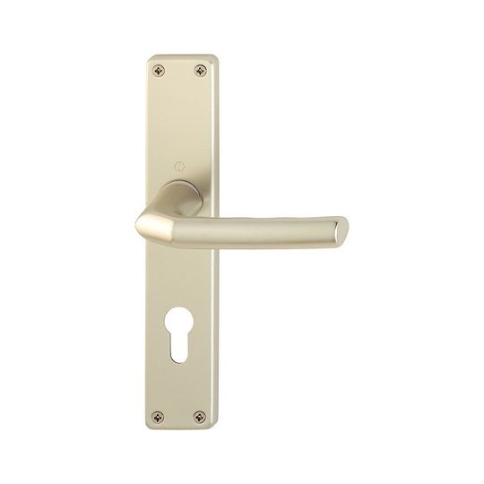 HOPPE Drückergarnitur Birmingham 1117/202SP; Produkttyp: Drückergarnitur; Produkttyp (Hersteller): Drückergarnitur; Ausführung: Langschild; Befestigungsart: sichtbar verschraubt; Befestigungstechnik: ohne Stütznocken; Form: eckig; Vierkant: 8 mm; Material: Aluminium; Form Türgriff (innen): gekröpft; Form Türgriff (außen): gekröpft; Länge Türgriff (innen): 123 mm; Länge Türgriff (außen): 123 mm; Höhe Türgriff (innen): 56 mm; Höhe Türgriff (außen): 56 mm; Schildbreite außen: 40 mm; Schildbreite innen: 40 mm; Schildlänge außen: 215 mm; Schildlänge innen: 215 mm; Schildstärke außen: 7 mm; Schildstärke innen: 7 mm; Lagerung: wartungsfreies Gleitlager; Einsatzbereich: Zimmertür; Türart: Vollblatt; Türwerkstoff: Holz,Stahl; Lochung: Profilzylinder gelocht; Entfernung: 72 mm; DIN-Richtung: DIN Links-Rechts; Farbe: silber; Farbton: neusilberfarben; Oberfläche: eloxiert; Ausführung Vierkant: Profilstift; Türstärke min.: 27 mm; Türstärke max.: 47 mm