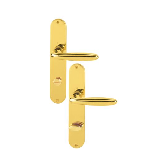 HOPPE Drückergarnitur Verona M151/302; Produkttyp: Drückergarnitur; Produkttyp (Hersteller): Drückergarnitur; Ausführung: Langschild; Befestigungsart: sichtbar verschraubt; Befestigungstechnik: ohne Stütznocken; Form: oval; Vierkant: 8 mm; Material: Messing; Form Türgriff (innen): L-Form; Form Türgriff (außen): L-Form; Länge Türgriff (innen): 122 mm; Länge Türgriff (außen): 122 mm; Höhe Türgriff (innen): 53 mm; Höhe Türgriff (außen): 53 mm; Schildbreite außen: 41 mm; Schildbreite innen: 41 mm; Schildlänge außen: 219 mm; Schildlänge innen: 219 mm; Schildstärke außen: 5 mm; Schildstärke innen: 5 mm; Lagerung: wartungsfreies Gleitlager; Einsatzbereich: Objekttür; Türart: Vollblatt; Türwerkstoff: Holz,Stahl; Norm: DIN EN 1906; Lochung: WC Schlitzkopf; Entfernung: 78 mm; Riegel-Vierkant: 8 mm; DIN-Richtung: DIN Links-Rechts; Farbe: gelb; Farbton: messing poliert; Ausführung Vierkant: Vierkantstift; Türstärke min.: 37 mm; Türstärke max.: 42 mm