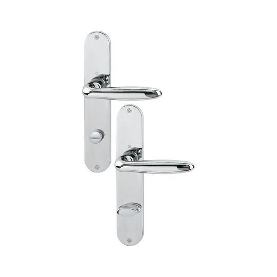 HOPPE Drückergarnitur Verona M151/302; Produkttyp: Drückergarnitur; Produkttyp (Hersteller): Drückergarnitur; Ausführung: Langschild; Befestigungsart: sichtbar verschraubt; Befestigungstechnik: ohne Stütznocken; Form: oval; Vierkant: 8 mm; Material: Messing; Form Türgriff (innen): L-Form; Form Türgriff (außen): L-Form; Länge Türgriff (innen): 122 mm; Länge Türgriff (außen): 122 mm; Höhe Türgriff (innen): 53 mm; Höhe Türgriff (außen): 53 mm; Schildbreite außen: 41 mm; Schildbreite innen: 41 mm; Schildlänge außen: 219 mm; Schildlänge innen: 219 mm; Schildstärke außen: 5 mm; Schildstärke innen: 5 mm; Lagerung: wartungsfreies Gleitlager; Einsatzbereich: Objekttür; Türart: Vollblatt; Türwerkstoff: Holz,Stahl; Norm: DIN EN 1906; Lochung: WC Schlitzkopf; Entfernung: 78 mm; Riegel-Vierkant: 8 mm; DIN-Richtung: DIN Links-Rechts; Farbe: silber; Farbton: verchromt-Resista; Ausführung Vierkant: Vierkantstift; Türstärke min.: 37 mm; Türstärke max.: 42 mm