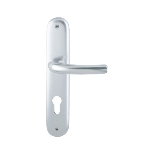 HOPPE Drückergarnitur Tôkyô 1710/273P; Produkttyp: Drückergarnitur; Produkttyp (Hersteller): Drückergarnitur; Ausführung: Langschild; Befestigungsart: sichtbar verschraubt; Befestigungstechnik: ohne Stütznocken; Form: oval; Vierkant: 8 mm; Material: Aluminium; Form Türgriff (innen): gebogen; Form Türgriff (außen): gebogen; Länge Türgriff (innen): 128 mm; Länge Türgriff (außen): 128 mm; Höhe Türgriff (innen): 56 mm; Höhe Türgriff (außen): 56 mm; Schildbreite außen: 46 mm; Schildbreite innen: 46 mm; Schildlänge außen: 240 mm; Schildlänge innen: 240 mm; Schildstärke außen: 9 mm; Schildstärke innen: 9 mm; Lagerung: wartungsfreies Gleitlager,mit Rückholfeder; Einsatzbereich: Objekttür; Türart: Vollblatt; Türwerkstoff: Holz,Stahl; Norm: DIN EN 1906; Lochung: Profilzylinder gelocht; Entfernung: 72 mm; DIN-Richtung: DIN Links-Rechts; Farbe: silber; Farbton: naturfarben; Oberfläche: eloxiert; Ausführung Vierkant: Vierkantstift; Türstärke min.: 37 mm; Türstärke max.: 47 mm