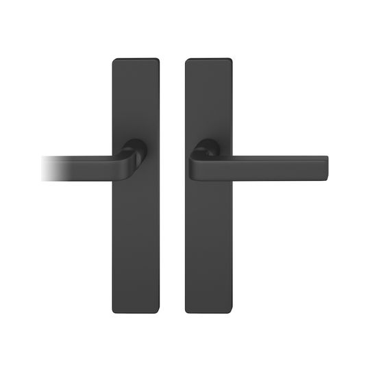 FSB Drückergarnitur 12 1004; Produkttyp: Drückergarnitur; Produkttyp (Hersteller): Drückergarnitur; Ausführung: Langschild; Befestigungsart: verdeckt verschraubt; Befestigungstechnik: mit Stütznocken; Form: eckig; Vierkant: 8 mm; Material: Aluminium; Material Unterkonstruktion: Kunststoff-Edelstahl verstärkt; Form Türgriff (innen): Design; Form Türgriff (außen): Design; Breite Türgriff (innen): 19 mm; Breite Türgriff (außen): 19 mm; Länge Türgriff (innen): 133 mm; Länge Türgriff (außen): 133 mm; Höhe Türgriff (innen): 58 mm; Höhe Türgriff (außen): 58 mm; Schildbreite außen: 45 mm; Schildbreite innen: 45 mm; Schildlänge außen: 245 mm; Schildlänge innen: 245 mm; Schildstärke außen: 7 mm; Schildstärke innen: 7 mm; Lagerung: Adapter-Standardlager,festdrehbar; Einsatzbereich: Zimmertür; Türart: Vollblatt; Türwerkstoff: Holz,Stahl; Norm: DIN EN 1906; Lochung: ungelocht; DIN-Richtung: DIN Links-Rechts; Farbe: schwarz; Oberfläche: gestrahlt,eloxiert; Design Türdrücker: David Chipperfield; Ausführung Vierkant: Stabilstift; Betätigungswinkel max.: 45 °; Türstärke min.: 39 mm; Türstärke max.: 58 mm