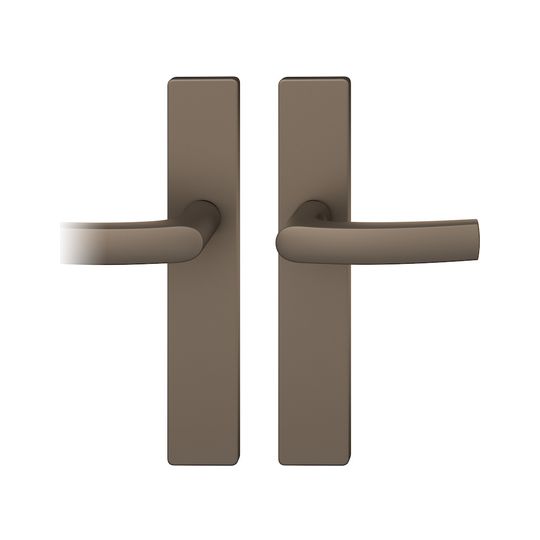 FSB Drückergarnitur 12 1015; Produkttyp: Drückergarnitur; Produkttyp (Hersteller): Drückergarnitur; Ausführung: Langschild; Befestigungsart: verdeckt verschraubt; Befestigungstechnik: mit Stütznocken; Form: eckig; Vierkant: 8 mm; Material: Aluminium; Form Türgriff (innen): gebogen; Form Türgriff (außen): gebogen; Breite Türgriff (innen): 22 mm; Breite Türgriff (außen): 22 mm; Länge Türgriff (innen): 122 mm; Länge Türgriff (außen): 122 mm; Höhe Türgriff (innen): 55 mm; Höhe Türgriff (außen): 55 mm; Schildbreite außen: 45 mm; Schildbreite innen: 45 mm; Schildlänge außen: 245 mm; Schildlänge innen: 245 mm; Schildstärke außen: 7 mm; Schildstärke innen: 7 mm; Lagerung: Adapter-Standardlager,festdrehbar; Einsatzbereich: Zimmertür; Türart: Vollblatt; Türwerkstoff: Holz,Stahl; Norm: DIN EN 1906; Lochung: ungelocht; DIN-Richtung: DIN Links-Rechts; Farbe: braun; Farbton: mittelbronzefarbig; Oberfläche: gestrahlt,eloxiert; Ausführung Vierkant: Stabilstift; Betätigungswinkel max.: 45 °; Türstärke min.: 39 mm; Türstärke max.: 58 mm
