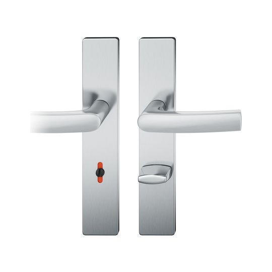 FSB Drückergarnitur 12 1015; Produkttyp: Drückergarnitur; Produkttyp (Hersteller): Drückergarnitur; Ausführung: Langschild; Befestigungsart: verdeckt verschraubt; Befestigungstechnik: mit Stütznocken; Form: eckig; Vierkant: 8 mm; Material: Edelstahl; Form Türgriff (innen): gebogen; Form Türgriff (außen): gebogen; Breite Türgriff (innen): 22 mm; Breite Türgriff (außen): 22 mm; Länge Türgriff (innen): 122 mm; Länge Türgriff (außen): 122 mm; Höhe Türgriff (innen): 55 mm; Höhe Türgriff (außen): 55 mm; Schildbreite außen: 45 mm; Schildbreite innen: 45 mm; Schildlänge außen: 245 mm; Schildlänge innen: 245 mm; Schildstärke außen: 7 mm; Schildstärke innen: 7 mm; Lagerung: Adapter-Standardlager,festdrehbar; Einsatzbereich: Zimmertür; Türart: Vollblatt; Türwerkstoff: Holz,Stahl; Norm: DIN EN 1906; Lochung: WC Schauscheibe/Schlitzkopf; Entfernung: 78 mm; Riegel-Vierkant: 8 mm; DIN-Richtung: DIN Links-Rechts; Farbe: grau; Farbton: edelstahl; Oberfläche: poliert; Ausführung Vierkant: Stabilstift; Betätigungswinkel max.: 45 °; Türstärke min.: 39 mm; Türstärke max.: 58 mm