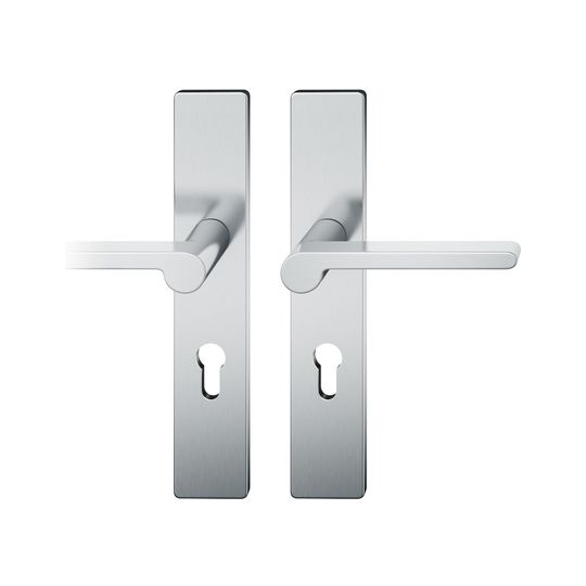 FSB Drückergarnitur 12 1021; Produkttyp: Drückergarnitur; Produkttyp (Hersteller): Drückergarnitur; Ausführung: Langschild; Befestigungsart: verdeckt verschraubt; Befestigungstechnik: mit Stütznock...