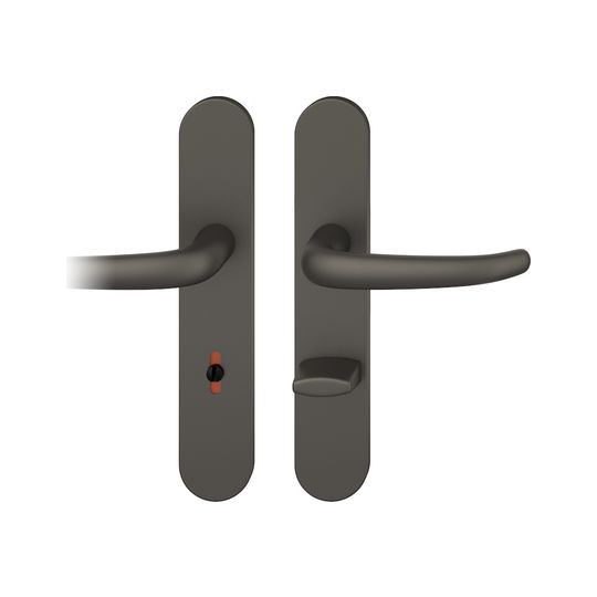 FSB Drückergarnitur 12 1023; Produkttyp: Drückergarnitur; Produkttyp (Hersteller): Drückergarnitur; Ausführung: Langschild; Befestigungsart: verdeckt verschraubt; Befestigungstechnik: mit Stütznocken; Form: oval; Vierkant: 8 mm; Material: Aluminium; Material Unterkonstruktion: Kunststoff-Edelstahl verstärkt; Form Türgriff (innen): gebogen; Form Türgriff (außen): gebogen; Breite Türgriff (innen): 15 mm; Breite Türgriff (außen): 15 mm; Länge Türgriff (innen): 135 mm; Länge Türgriff (außen): 135 mm; Höhe Türgriff (innen): 59 mm; Höhe Türgriff (außen): 59 mm; Schildbreite außen: 45 mm; Schildbreite innen: 45 mm; Schildlänge außen: 245 mm; Schildlänge innen: 245 mm; Schildstärke außen: 7 mm; Schildstärke innen: 7 mm; Lagerung: Adapter-Standardlager,festdrehbar; Einsatzbereich: Zimmertür; Türart: Vollblatt; Türwerkstoff: Holz,Stahl; Norm: DIN EN 1906; Lochung: WC Schauscheibe/Schlitzkopf; Entfernung: 78 mm; Riegel-Vierkant: 8 mm; DIN-Richtung: DIN Links-Rechts; Farbe: braun; Farbton: dunkelbronzefarbig; Oberfläche: gestrahlt,eloxiert; Ausführung Vierkant: Stabilstift; Betätigungswinkel max.: 45 °; Türstärke min.: 39 mm; Türstärke max.: 58 mm