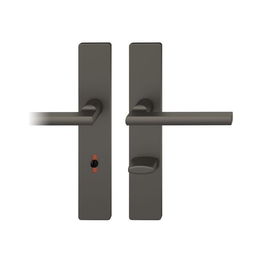 FSB Drückergarnitur 12 1035; Produkttyp: Drückergarnitur; Produkttyp (Hersteller): Drückergarnitur; Ausführung: Langschild; Befestigungsart: verdeckt verschraubt; Befestigungstechnik: mit Stütznocken; Form: eckig; Vierkant: 8 mm; Material: Aluminium; Material Unterkonstruktion: Kunststoff-Edelstahl verstärkt; Form Türgriff (innen): L-Form; Form Türgriff (außen): L-Form; Länge Türgriff (innen): 137 mm; Länge Türgriff (außen): 137 mm; Höhe Türgriff (innen): 58 mm; Höhe Türgriff (außen): 58 mm; Schildbreite außen: 45 mm; Schildbreite innen: 45 mm; Schildlänge außen: 245 mm; Schildlänge innen: 245 mm; Schildstärke außen: 7 mm; Schildstärke innen: 7 mm; Lagerung: Adapter-Standardlager,festdrehbar; Einsatzbereich: Zimmertür; Türart: Vollblatt; Türwerkstoff: Holz,Stahl; Norm: DIN EN 1906; Lochung: WC Schauscheibe/Schlitzkopf; Entfernung: 78 mm; Riegel-Vierkant: 8 mm; DIN-Richtung: DIN Links-Rechts; Farbe: braun; Farbton: dunkelbronzefarbig; Oberfläche: gestrahlt,eloxiert; Design Türdrücker: Heike Falkenberg; Ausführung Vierkant: Stabilstift; Betätigungswinkel max.: 45 °; Türstärke min.: 39 mm; Türstärke max.: 58 mm