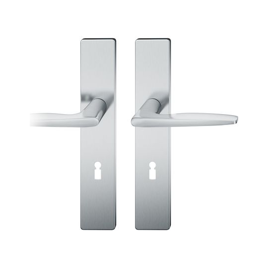 FSB Drückergarnitur 12 1058; Produkttyp: Drückergarnitur; Produkttyp (Hersteller): Drückergarnitur; Ausführung: Langschild; Befestigungsart: verdeckt verschraubt; Befestigungstechnik: mit Stütznock...