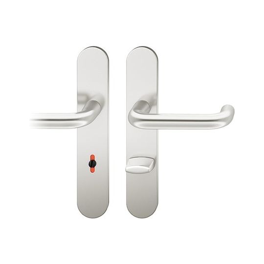 FSB Drückergarnitur 12 1070; Produkttyp: Drückergarnitur; Produkttyp (Hersteller): Drückergarnitur; Ausführung: Langschild; Befestigungsart: verdeckt verschraubt; Befestigungstechnik: mit Stütznocken; Form: oval; Vierkant: 8 mm; Material: Aluminium; Material Unterkonstruktion: Kunststoff-Edelstahl verstärkt; Form Türgriff (innen): U-Form; Form Türgriff (außen): U-Form; Durchmesser Türgriff (innen): 20 mm; Durchmesser Türgriff (außen): 20 mm; Länge Türgriff (innen): 145 mm; Länge Türgriff (außen): 145 mm; Höhe Türgriff (innen): 63 mm; Höhe Türgriff (außen): 63 mm; Schildbreite außen: 45 mm; Schildbreite innen: 45 mm; Schildlänge außen: 245 mm; Schildlänge innen: 245 mm; Schildstärke außen: 7 mm; Schildstärke innen: 7 mm; Lagerung: Adapter-Standardlager,festdrehbar; Einsatzbereich: Zimmertür; Türart: Vollblatt; Türwerkstoff: Holz,Stahl; Norm: DIN EN 1906; Lochung: WC Schauscheibe/Schlitzkopf; Entfernung: 78 mm; Riegel-Vierkant: 8 mm; DIN-Richtung: DIN Links-Rechts; Farbe: weiß; Farbe (RAL): ähnlich RAL 9016; Farbton: verkehrsweiß; Oberfläche: farbig kunststoffbeschichtet; Ausführung Vierkant: Stabilstift; Betätigungswinkel max.: 45 °; Türstärke min.: 39 mm; Türstärke max.: 58 mm