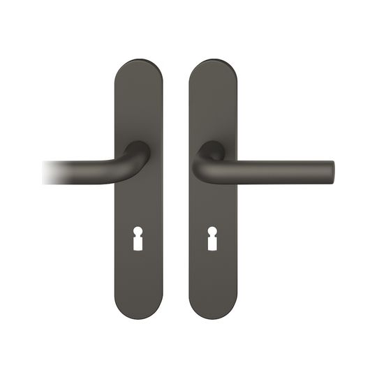 FSB Drückergarnitur 12 1075; Produkttyp: Drückergarnitur; Produkttyp (Hersteller): Drückergarnitur; Ausführung: Langschild; Befestigungsart: verdeckt verschraubt; Befestigungstechnik: mit Stütznocken; Form: oval; Vierkant: 8 mm; Material: Aluminium; Material Unterkonstruktion: Kunststoff-Edelstahl verstärkt; Form Türgriff (innen): gebogen; Form Türgriff (außen): gebogen; Durchmesser Türgriff (innen): 20 mm; Durchmesser Türgriff (außen): 20 mm; Länge Türgriff (innen): 132 mm; Länge Türgriff (außen): 132 mm; Höhe Türgriff (innen): 63 mm; Höhe Türgriff (außen): 63 mm; Schildbreite außen: 45 mm; Schildbreite innen: 45 mm; Schildlänge außen: 245 mm; Schildlänge innen: 245 mm; Schildstärke außen: 7 mm; Schildstärke innen: 7 mm; Lagerung: Adapter-Standardlager,festdrehbar; Einsatzbereich: Zimmertür; Türart: Vollblatt; Türwerkstoff: Holz,Stahl; Norm: DIN EN 1906; Lochung: Buntbart gelocht; Entfernung: 72 mm; DIN-Richtung: DIN Links-Rechts; Farbe: braun; Farbton: dunkelbronzefarbig; Oberfläche: gestrahlt,eloxiert; Ausführung Vierkant: Stabilstift; Betätigungswinkel max.: 45 °; Türstärke min.: 39 mm; Türstärke max.: 58 mm