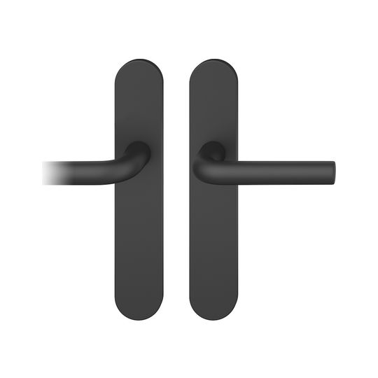 FSB Drückergarnitur 12 1075; Produkttyp: Drückergarnitur; Produkttyp (Hersteller): Drückergarnitur; Ausführung: Langschild; Befestigungsart: verdeckt verschraubt; Befestigungstechnik: mit Stütznocken; Form: oval; Vierkant: 8 mm; Material: Aluminium; Material Unterkonstruktion: Kunststoff-Edelstahl verstärkt; Form Türgriff (innen): gebogen; Form Türgriff (außen): gebogen; Durchmesser Türgriff (innen): 20 mm; Durchmesser Türgriff (außen): 20 mm; Länge Türgriff (innen): 132 mm; Länge Türgriff (außen): 132 mm; Höhe Türgriff (innen): 63 mm; Höhe Türgriff (außen): 63 mm; Schildbreite außen: 45 mm; Schildbreite innen: 45 mm; Schildlänge außen: 245 mm; Schildlänge innen: 245 mm; Schildstärke außen: 7 mm; Schildstärke innen: 7 mm; Lagerung: Adapter-Standardlager,festdrehbar; Einsatzbereich: Zimmertür; Türart: Vollblatt; Türwerkstoff: Holz,Stahl; Norm: DIN EN 1906; Lochung: ungelocht; DIN-Richtung: DIN Links-Rechts; Farbe: schwarz; Oberfläche: gestrahlt,eloxiert; Ausführung Vierkant: Stabilstift; Betätigungswinkel max.: 45 °; Türstärke min.: 39 mm; Türstärke max.: 58 mm