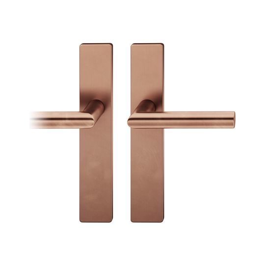 FSB Drückergarnitur 12 1076; Produkttyp: Drückergarnitur; Produkttyp (Hersteller): Drückergarnitur; Ausführung: Langschild; Befestigungsart: verdeckt verschraubt; Befestigungstechnik: mit Stütznocken; Form: eckig; Vierkant: 8 mm; Material: Bronze; Material Unterkonstruktion: Kunststoff-Edelstahl verstärkt; Form Türgriff (innen): L-Form; Form Türgriff (außen): L-Form; Durchmesser Türgriff (innen): 21 mm; Durchmesser Türgriff (außen): 21 mm; Länge Türgriff (innen): 137 mm; Länge Türgriff (außen): 137 mm; Höhe Türgriff (innen): 58 mm; Höhe Türgriff (außen): 58 mm; Schildbreite außen: 45 mm; Schildbreite innen: 45 mm; Schildlänge außen: 245 mm; Schildlänge innen: 245 mm; Schildstärke außen: 7 mm; Schildstärke innen: 7 mm; Lagerung: Adapter-Standardlager,festdrehbar; Einsatzbereich: Zimmertür; Türart: Vollblatt; Türwerkstoff: Holz,Stahl; Norm: DIN EN 1906; Lochung: ungelocht; DIN-Richtung: DIN Links-Rechts; Farbe: braun; Farbton: hellbronze; Oberfläche: patiniert gewachst; Ausführung Vierkant: Stabilstift; Betätigungswinkel max.: 45 °; Türstärke min.: 39 mm; Türstärke max.: 58 mm