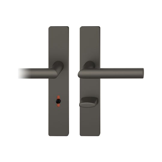 FSB Drückergarnitur 12 1076; Produkttyp: Drückergarnitur; Produkttyp (Hersteller): Drückergarnitur; Ausführung: Langschild; Befestigungsart: verdeckt verschraubt; Befestigungstechnik: mit Stütznocken; Form: eckig; Vierkant: 8 mm; Material: Aluminium; Material Unterkonstruktion: Kunststoff-Edelstahl verstärkt; Form Türgriff (innen): L-Form; Form Türgriff (außen): L-Form; Durchmesser Türgriff (innen): 21 mm; Durchmesser Türgriff (außen): 21 mm; Länge Türgriff (innen): 137 mm; Länge Türgriff (außen): 137 mm; Höhe Türgriff (innen): 58 mm; Höhe Türgriff (außen): 58 mm; Schildbreite außen: 45 mm; Schildbreite innen: 45 mm; Schildlänge außen: 245 mm; Schildlänge innen: 245 mm; Schildstärke außen: 7 mm; Schildstärke innen: 7 mm; Lagerung: Adapter-Standardlager,festdrehbar; Einsatzbereich: Zimmertür; Türart: Vollblatt; Türwerkstoff: Holz,Stahl; Norm: DIN EN 1906; Lochung: WC Schauscheibe/Schlitzkopf; Entfernung: 78 mm; Riegel-Vierkant: 8 mm; DIN-Richtung: DIN Links-Rechts; Farbe: braun; Farbton: dunkelbronzefarbig; Oberfläche: gestrahlt,eloxiert; Ausführung Vierkant: Stabilstift; Betätigungswinkel max.: 45 °; Türstärke min.: 39 mm; Türstärke max.: 58 mm
