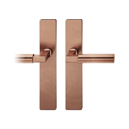 FSB Drückergarnitur 12 1102; Produkttyp: Drückergarnitur; Produkttyp (Hersteller): Drückergarnitur; Ausführung: Langschild; Befestigungsart: verdeckt verschraubt; Befestigungstechnik: mit Stütznocken; Form: eckig; Vierkant: 8 mm; Material: Bronze; Material Unterkonstruktion: Kunststoff-Edelstahl verstärkt; Form Türgriff (innen): Design; Form Türgriff (außen): Design; Durchmesser Türgriff (innen): 22 mm; Durchmesser Türgriff (außen): 22 mm; Länge Türgriff (innen): 127 mm; Länge Türgriff (außen): 127 mm; Höhe Türgriff (innen): 61 mm; Höhe Türgriff (außen): 61 mm; Schildbreite außen: 45 mm; Schildbreite innen: 45 mm; Schildlänge außen: 245 mm; Schildlänge innen: 245 mm; Schildstärke außen: 7 mm; Schildstärke innen: 7 mm; Lagerung: Adapter-Standardlager,festdrehbar; Einsatzbereich: Zimmertür; Türart: Vollblatt; Türwerkstoff: Holz,Stahl; Norm: DIN EN 1906; Lochung: ungelocht; DIN-Richtung: DIN Links-Rechts; Farbe: braun; Farbton: hellbronze; Oberfläche: patiniert gewachst; Design Türdrücker: Alessandro Mendini; Ausführung Vierkant: Stabilstift; Betätigungswinkel max.: 45 °; Türstärke min.: 39 mm; Türstärke max.: 58 mm