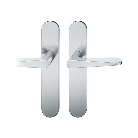 FSB Drückergarnitur 12 1144; Produkttyp: Drückergarnitur; Produkttyp (Hersteller): Drückergarnitur; Ausführung: Langschild; Befestigungsart: verdeckt verschraubt; Befestigungstechnik: mit Stütznocken; Form: oval; Vierkant: 8 mm; Material: Edelstahl; Material Unterkonstruktion: Kunststoff-Edelstahl verstärkt; Form Türgriff (innen): Design; Form Türgriff (außen): Design; Länge Türgriff (innen): 131 mm; Länge Türgriff (außen): 131 mm; Höhe Türgriff (innen): 64 mm; Höhe Türgriff (außen): 64 mm; Schildbreite außen: 45 mm; Schildbreite innen: 45 mm; Schildlänge außen: 245 mm; Schildlänge innen: 245 mm; Schildstärke außen: 7 mm; Schildstärke innen: 7 mm; Lagerung: Adapter-Standardlager,festdrehbar; Einsatzbereich: Zimmertür; Türart: Vollblatt; Türwerkstoff: Holz,Stahl; Norm: DIN EN 1906; Lochung: ungelocht; DIN-Richtung: DIN Links-Rechts; Farbe: grau; Farbton: edelstahl; Oberfläche: fein matt; Design Türdrücker: Jasper Morrison; Ausführung Vierkant: Stabilstift; Betätigungswinkel max.: 45 °; Türstärke min.: 39 mm; Türstärke max.: 58 mm