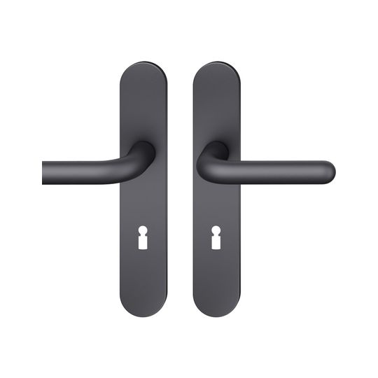 FSB Drückergarnitur 12 1147; Produkttyp: Drückergarnitur; Produkttyp (Hersteller): Drückergarnitur; Ausführung: Langschild; Befestigungsart: verdeckt verschraubt; Befestigungstechnik: mit Stütznocken; Form: oval; Vierkant: 8 mm; Material: Aluminium; Material Unterkonstruktion: Kunststoff-Edelstahl verstärkt; Form Türgriff (innen): gebogen; Form Türgriff (außen): gebogen; Durchmesser Türgriff (innen): 20 mm; Durchmesser Türgriff (außen): 20 mm; Länge Türgriff (innen): 132 mm; Länge Türgriff (außen): 132 mm; Höhe Türgriff (innen): 63 mm; Höhe Türgriff (außen): 63 mm; Schildbreite außen: 45 mm; Schildbreite innen: 45 mm; Schildlänge außen: 245 mm; Schildlänge innen: 245 mm; Schildstärke außen: 7 mm; Schildstärke innen: 7 mm; Lagerung: Adapter-Standardlager,festdrehbar; Einsatzbereich: Zimmertür; Türart: Vollblatt; Türwerkstoff: Holz,Stahl; Norm: DIN EN 1906; Lochung: Buntbart gelocht; Entfernung: 72 mm; DIN-Richtung: DIN Links-Rechts; Farbe: schwarz; Oberfläche: gestrahlt,eloxiert; Ausführung Vierkant: Stabilstift; Betätigungswinkel max.: 45 °; Türstärke min.: 39 mm; Türstärke max.: 58 mm