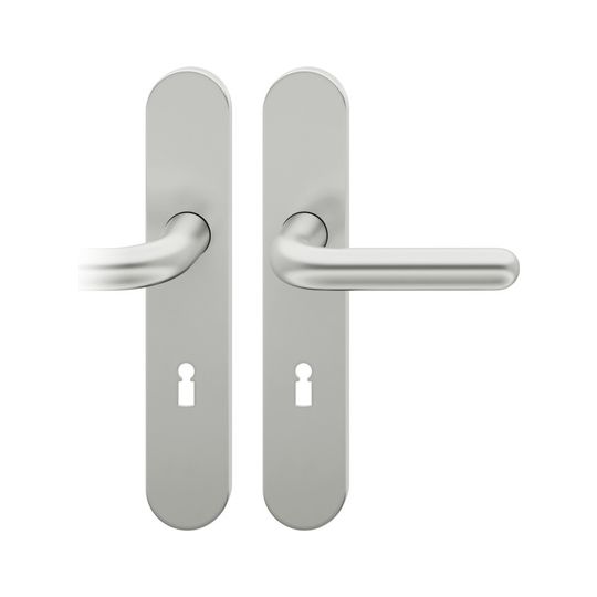 FSB Drückergarnitur 12 1147; Produkttyp: Drückergarnitur; Produkttyp (Hersteller): Drückergarnitur; Ausführung: Langschild; Befestigungsart: verdeckt verschraubt; Befestigungstechnik: mit Stütznocken; Form: oval; Vierkant: 8 mm; Material: Aluminium; Material Unterkonstruktion: Kunststoff-Edelstahl verstärkt; Form Türgriff (innen): gebogen; Form Türgriff (außen): gebogen; Durchmesser Türgriff (innen): 20 mm; Durchmesser Türgriff (außen): 20 mm; Länge Türgriff (innen): 132 mm; Länge Türgriff (außen): 132 mm; Höhe Türgriff (innen): 63 mm; Höhe Türgriff (außen): 63 mm; Schildbreite außen: 45 mm; Schildbreite innen: 45 mm; Schildlänge außen: 245 mm; Schildlänge innen: 245 mm; Schildstärke außen: 7 mm; Schildstärke innen: 7 mm; Lagerung: Adapter-Standardlager,festdrehbar; Einsatzbereich: Zimmertür; Türart: Vollblatt; Türwerkstoff: Holz,Stahl; Norm: DIN EN 1906; Lochung: ungelocht; DIN-Richtung: DIN Links-Rechts; Farbe: silber; Farbton: naturfarben; Oberfläche: eloxiert; Ausführung Vierkant: Stabilstift; Betätigungswinkel max.: 45 °; Türstärke min.: 39 mm; Türstärke max.: 58 mm