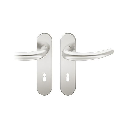 FSB Drückergarnitur 12 1160; Produkttyp: Drückergarnitur; Produkttyp (Hersteller): Drückergarnitur; Ausführung: Kurzschild; Befestigungsart: verdeckt verschraubt; Befestigungstechnik: mit Stütznocken; Form: oval; Vierkant: 8 mm; Material: Edelstahl; Material Unterkonstruktion: Kunststoff; Form Türgriff (innen): gebogen; Form Türgriff (außen): gebogen; Länge Türgriff (innen): 146 mm; Länge Türgriff (außen): 146 mm; Höhe Türgriff (innen): 66 mm; Höhe Türgriff (außen): 66 mm; Schildbreite außen: 45 mm; Schildbreite innen: 45 mm; Schildlänge außen: 185 mm; Schildlänge innen: 185 mm; Schildstärke außen: 7 mm; Schildstärke innen: 7 mm; Lagerung: Adapter-Standardlager,festdrehbar; Einsatzbereich: Zimmertür; Türart: Vollblatt; Türwerkstoff: Holz,Stahl; Norm: DIN EN 1906; Lochung: Buntbart gelocht; Entfernung: 72 mm; DIN-Richtung: DIN Links-Rechts; Farbe: grau; Farbton: edelstahl; Oberfläche: fein matt; Ausführung Vierkant: Stabilstift; Betätigungswinkel max.: 45 °; Türstärke min.: 39 mm; Türstärke max.: 58 mm