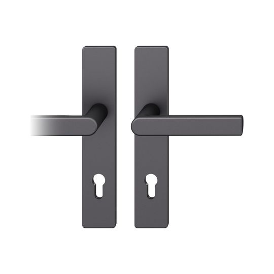 FSB Drückergarnitur 12 1244; Produkttyp: Drückergarnitur; Produkttyp (Hersteller): Drückergarnitur; Ausführung: Langschild; Befestigungsart: verdeckt verschraubt; Befestigungstechnik: mit Stütznocken; Form: eckig; Vierkant: 8 mm; Material: Aluminium; Material Unterkonstruktion: Kunststoff-Edelstahl verstärkt; Form Türgriff (innen): L-Form; Form Türgriff (außen): L-Form; Breite Türgriff (innen): 24 mm; Breite Türgriff (außen): 24 mm; Länge Türgriff (innen): 140 mm; Länge Türgriff (außen): 140 mm; Höhe Türgriff (innen): 58 mm; Höhe Türgriff (außen): 58 mm; Schildbreite außen: 45 mm; Schildbreite innen: 45 mm; Schildlänge außen: 245 mm; Schildlänge innen: 245 mm; Schildstärke außen: 7 mm; Schildstärke innen: 7 mm; Lagerung: Adapter-Standardlager,festdrehbar; Einsatzbereich: Haustür; Türart: Vollblatt; Türwerkstoff: Holz,Stahl; Norm: DIN EN 1906; Lochung: Profilzylinder gelocht; Entfernung: 92 mm; DIN-Richtung: DIN Links-Rechts; Farbe: schwarz; Oberfläche: gestrahlt,eloxiert; Design Türdrücker: gmp Architekten von Gerkan, Marg und Partner; Ausführung Vierkant: Stabilstift; Betätigungswinkel max.: 45 °; Türstärke min.: 39 mm; Türstärke max.: 58 mm