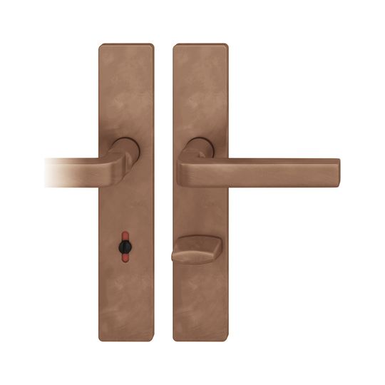 FSB Drückergarnitur 72 1004; Produkttyp: Drückergarnitur; Produkttyp (Hersteller): Drückergarnitur; Ausführung: Langschild; Befestigungsart: verdeckt verschraubt; Befestigungstechnik: mit Stütznocken; Form: eckig; Vierkant: 8 mm; Material: Bronze; Form Türgriff (innen): Design; Form Türgriff (außen): Design; Breite Türgriff (innen): 19 mm; Breite Türgriff (außen): 19 mm; Länge Türgriff (innen): 133 mm; Länge Türgriff (außen): 133 mm; Höhe Türgriff (innen): 58 mm; Höhe Türgriff (außen): 58 mm; Schildbreite außen: 45 mm; Schildbreite innen: 45 mm; Schildlänge außen: 245 mm; Schildlänge innen: 245 mm; Schildstärke außen: 7 mm; Schildstärke innen: 7 mm; Lagerung: Ausgleichslager® 3,mit Rückholfeder,festdrehbar; Einsatzbereich: Zimmertür; Türart: Vollblatt; Türwerkstoff: Holz,Stahl; Norm: DIN EN 1906; Lochung: WC Schauscheibe/Schlitzkopf; Entfernung: 78 mm; Riegel-Vierkant: 8 mm; DIN-Richtung: DIN Links; Farbe: braun; Farbton: hellbronze; Oberfläche: patiniert gewachst; Design Türdrücker: David Chipperfield; Betätigungswinkel max.: 35 °; Türstärke min.: 39 mm; Türstärke max.: 48 mm