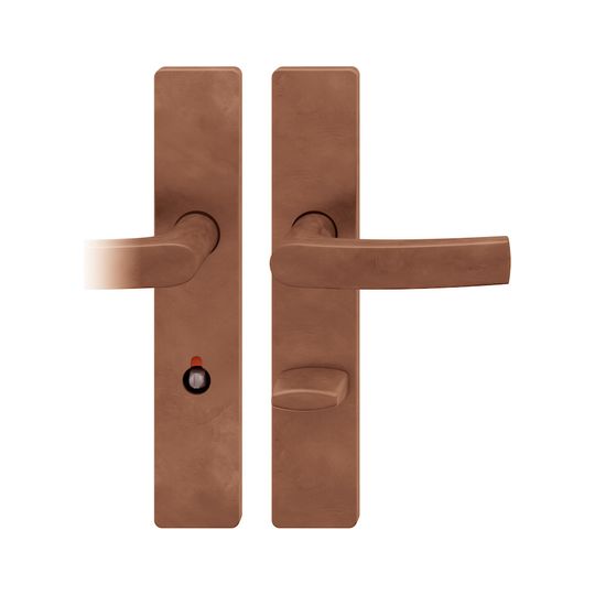 FSB Drückergarnitur 72 1015; Produkttyp: Drückergarnitur; Produkttyp (Hersteller): Drückergarnitur; Ausführung: Langschild; Befestigungsart: verdeckt verschraubt; Befestigungstechnik: mit Stütznocken; Form: eckig; Vierkant: 8 mm; Material: Bronze; Form Türgriff (innen): gebogen; Form Türgriff (außen): gebogen; Breite Türgriff (innen): 22 mm; Breite Türgriff (außen): 22 mm; Länge Türgriff (innen): 122 mm; Länge Türgriff (außen): 122 mm; Höhe Türgriff (innen): 55 mm; Höhe Türgriff (außen): 55 mm; Schildbreite außen: 45 mm; Schildbreite innen: 45 mm; Schildlänge außen: 245 mm; Schildlänge innen: 245 mm; Schildstärke außen: 7 mm; Schildstärke innen: 7 mm; Lagerung: Ausgleichslager® 3,mit Rückholfeder,festdrehbar; Einsatzbereich: Zimmertür; Türart: Vollblatt; Türwerkstoff: Holz,Stahl; Norm: DIN EN 1906; Lochung: WC Schauscheibe/Schlitzkopf; Entfernung: 78 mm; Riegel-Vierkant: 8 mm; DIN-Richtung: DIN Rechts; Farbe: braun; Farbton: hellbronze; Oberfläche: patiniert gewachst; Betätigungswinkel max.: 35 °; Türstärke min.: 39 mm; Türstärke max.: 48 mm