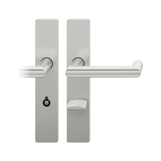 FSB Drückergarnitur 72 1016; Produkttyp: Drückergarnitur; Produkttyp (Hersteller): Drückergarnitur; Ausführung: Langschild; Befestigungsart: verdeckt verschraubt; Befestigungstechnik: mit Stütznocken; Form: eckig; Vierkant: 8 mm; Material: Aluminium; Form Türgriff (innen): U-Form; Form Türgriff (außen): U-Form; Durchmesser Türgriff (innen): 21 mm; Durchmesser Türgriff (außen): 21 mm; Länge Türgriff (innen): 143 mm; Länge Türgriff (außen): 143 mm; Höhe Türgriff (innen): 58 mm; Höhe Türgriff (außen): 58 mm; Schildbreite außen: 45 mm; Schildbreite innen: 45 mm; Schildlänge außen: 245 mm; Schildlänge innen: 245 mm; Schildstärke außen: 7 mm; Schildstärke innen: 7 mm; Lagerung: Ausgleichslager® 3,mit Rückholfeder,festdrehbar; Einsatzbereich: Zimmertür; Türart: Vollblatt; Türwerkstoff: Holz,Stahl; Norm: DIN EN 1906; Lochung: WC Schauscheibe/Schlitzkopf; Entfernung: 78 mm; Riegel-Vierkant: 8 mm; DIN-Richtung: DIN Rechts; Farbe: silber; Farbton: naturfarben; Oberfläche: eloxiert; Betätigungswinkel max.: 35 °; Türstärke min.: 39 mm; Türstärke max.: 48 mm