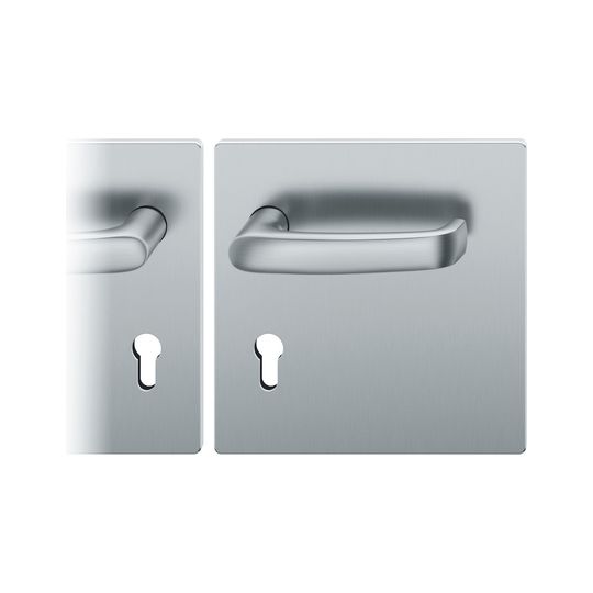 FSB Drückergarnitur 72 1045; Produkttyp: Drückergarnitur; Produkttyp (Hersteller): Drückergarnitur; Ausführung: Breitschild; Befestigungsart: verdeckt verschraubt; Befestigungstechnik: mit Stütznocken; Form: eckig; Vierkant: 8 mm; Material: Edelstahl; Form Türgriff (innen): gebogen; Form Türgriff (außen): gebogen; Länge Türgriff (innen): 132 mm; Länge Türgriff (außen): 132 mm; Höhe Türgriff (innen): 54 mm; Höhe Türgriff (außen): 54 mm; Schildbreite außen: 185 mm; Schildbreite innen: 185 mm; Schildlänge außen: 185 mm; Schildlänge innen: 185 mm; Schildstärke außen: 7 mm; Schildstärke innen: 7 mm; Lagerung: Ausgleichslager® 3; Einsatzbereich: Objekttür; Türart: Vollblatt; Türwerkstoff: Holz; Norm: DIN EN 1906; Lochung: Profilzylinder gelocht; Entfernung: 72 mm; DIN-Richtung: DIN Links; Farbe: grau; Farbton: edelstahl; Oberfläche: fein matt; Ausführung Vierkant: Stabilstift; Betätigungswinkel max.: 35 °; Türstärke min.: 39 mm; Türstärke max.: 48 mm
