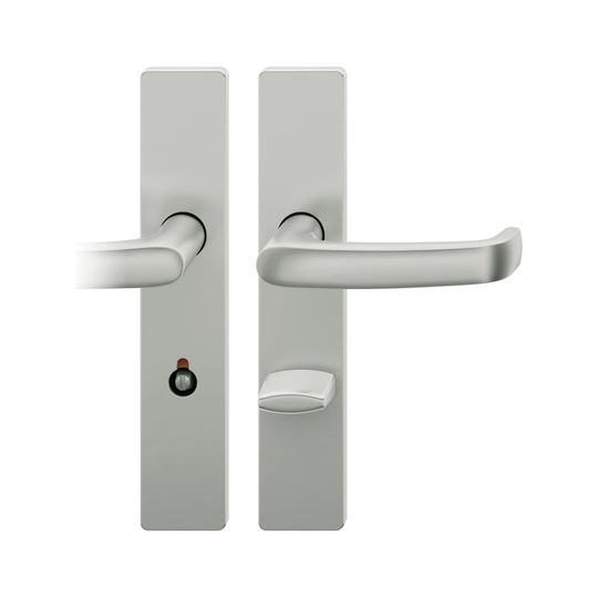 FSB Drückergarnitur 72 1045; Produkttyp: Drückergarnitur; Produkttyp (Hersteller): Drückergarnitur; Ausführung: Langschild; Befestigungsart: verdeckt verschraubt; Befestigungstechnik: mit Stütznocken; Form: eckig; Vierkant: 8 mm; Material: Aluminium; Form Türgriff (innen): gebogen; Form Türgriff (außen): gebogen; Breite Türgriff (innen): 22 mm; Breite Türgriff (außen): 22 mm; Länge Türgriff (innen): 132 mm; Länge Türgriff (außen): 132 mm; Höhe Türgriff (innen): 55 mm; Höhe Türgriff (außen): 55 mm; Schildbreite außen: 45 mm; Schildbreite innen: 45 mm; Schildlänge außen: 245 mm; Schildlänge innen: 245 mm; Schildstärke außen: 7 mm; Schildstärke innen: 7 mm; Lagerung: Ausgleichslager® 3,mit Rückholfeder,festdrehbar; Einsatzbereich: Zimmertür; Türart: Vollblatt; Türwerkstoff: Holz,Stahl; Norm: DIN EN 1906; Lochung: WC Schauscheibe/Schlitzkopf; Entfernung: 78 mm; Riegel-Vierkant: 8 mm; DIN-Richtung: DIN Rechts; Farbe: silber; Farbton: naturfarben; Oberfläche: eloxiert; Betätigungswinkel max.: 35 °; Türstärke min.: 39 mm; Türstärke max.: 48 mm