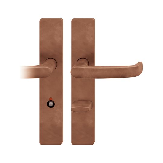 FSB Drückergarnitur 72 1045; Produkttyp: Drückergarnitur; Produkttyp (Hersteller): Drückergarnitur; Ausführung: Langschild; Befestigungsart: verdeckt verschraubt; Befestigungstechnik: mit Stütznocken; Form: eckig; Vierkant: 8 mm; Material: Bronze; Form Türgriff (innen): gebogen; Form Türgriff (außen): gebogen; Breite Türgriff (innen): 22 mm; Breite Türgriff (außen): 22 mm; Länge Türgriff (innen): 132 mm; Länge Türgriff (außen): 132 mm; Höhe Türgriff (innen): 55 mm; Höhe Türgriff (außen): 55 mm; Schildbreite außen: 45 mm; Schildbreite innen: 45 mm; Schildlänge außen: 245 mm; Schildlänge innen: 245 mm; Schildstärke außen: 7 mm; Schildstärke innen: 7 mm; Lagerung: Ausgleichslager® 3,mit Rückholfeder,festdrehbar; Einsatzbereich: Zimmertür; Türart: Vollblatt; Türwerkstoff: Holz,Stahl; Norm: DIN EN 1906; Lochung: WC Schauscheibe/Schlitzkopf; Entfernung: 78 mm; Riegel-Vierkant: 8 mm; DIN-Richtung: DIN Rechts; Farbe: braun; Farbton: hellbronze; Oberfläche: patiniert gewachst; Betätigungswinkel max.: 35 °; Türstärke min.: 39 mm; Türstärke max.: 48 mm