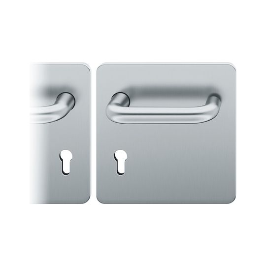 FSB Drückergarnitur 72 1070; Produkttyp: Drückergarnitur; Produkttyp (Hersteller): Drückergarnitur; Ausführung: Breitschild; Befestigungsart: verdeckt verschraubt; Befestigungstechnik: mit Stütznocken; Form: eckig; Vierkant: 8 mm; Material: Edelstahl; Form Türgriff (innen): U-Form; Form Türgriff (außen): U-Form; Durchmesser Türgriff (innen): 20 mm; Durchmesser Türgriff (außen): 20 mm; Länge Türgriff (innen): 145 mm; Länge Türgriff (außen): 145 mm; Höhe Türgriff (innen): 62 mm; Höhe Türgriff (außen): 62 mm; Schildbreite außen: 185 mm; Schildbreite innen: 185 mm; Schildlänge außen: 185 mm; Schildlänge innen: 185 mm; Schildstärke außen: 7 mm; Schildstärke innen: 7 mm; Lagerung: Ausgleichslager® 3; Einsatzbereich: Objekttür; Türart: Vollblatt; Türwerkstoff: Holz; Norm: DIN EN 1906; Lochung: Profilzylinder gelocht; Entfernung: 72 mm; DIN-Richtung: DIN Links; Farbe: grau; Farbton: edelstahl; Oberfläche: fein matt; Ausführung Vierkant: Stabilstift; Betätigungswinkel max.: 35 °; Türstärke min.: 39 mm; Türstärke max.: 48 mm