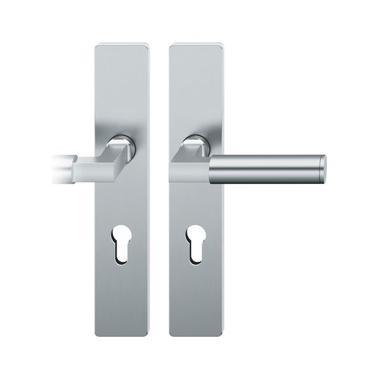 FSB Drückergarnitur 72 1102; Produkttyp: Drückergarnitur; Produkttyp (Hersteller): Drückergarnitur; Ausführung: Langschild; Befestigungsart: verdeckt verschraubt; Befestigungstechnik: mit Stütznocken; Form: eckig; Vierkant: 8 mm; Material: Edelstahl; Form Türgriff (innen): Design; Form Türgriff (außen): Design; Durchmesser Türgriff (innen): 22 mm; Durchmesser Türgriff (außen): 22 mm; Länge Türgriff (innen): 127 mm; Länge Türgriff (außen): 127 mm; Höhe Türgriff (innen): 61 mm; Höhe Türgriff (außen): 61 mm; Schildbreite außen: 45 mm; Schildbreite innen: 45 mm; Schildlänge außen: 245 mm; Schildlänge innen: 245 mm; Schildstärke außen: 7 mm; Schildstärke innen: 7 mm; Lagerung: Ausgleichslager® 3,mit Rückholfeder,festdrehbar; Einsatzbereich: Zimmertür; Türart: Vollblatt; Türwerkstoff: Holz,Stahl; Norm: DIN EN 1906; Lochung: Profilzylinder gelocht; Entfernung: 72 mm; DIN-Richtung: DIN Links; Farbe: grau; Farbton: edelstahl; Oberfläche: fein matt; Design Türdrücker: Alessandro Mendini; Betätigungswinkel max.: 35 °; Türstärke min.: 39 mm; Türstärke max.: 48 mm