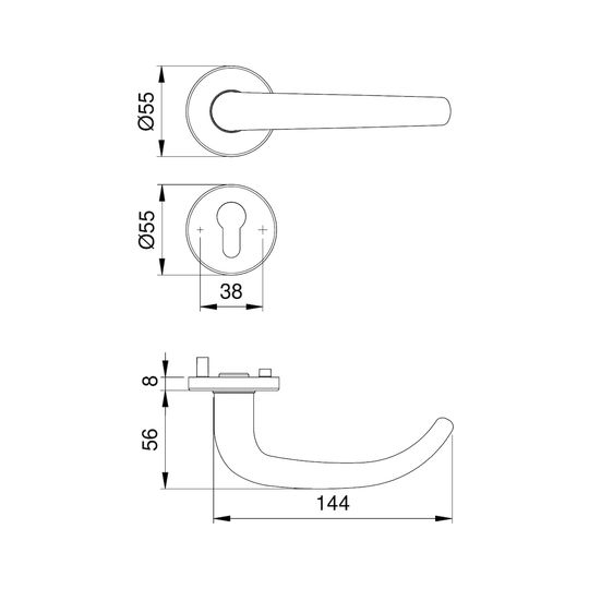 Drückergarnitur 1724 Rosette ,PZ,8,F1 eloxiert ,TS35-45