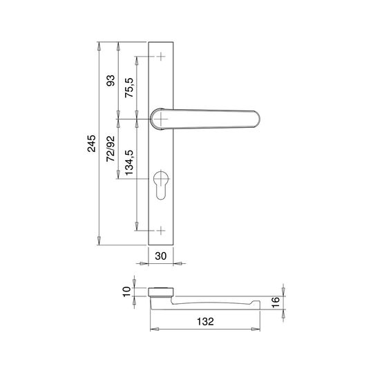 Drückergarnitur PAN 1320/9000 LS eck,PZ72/8,F1,TS 68-75,o. Nr.