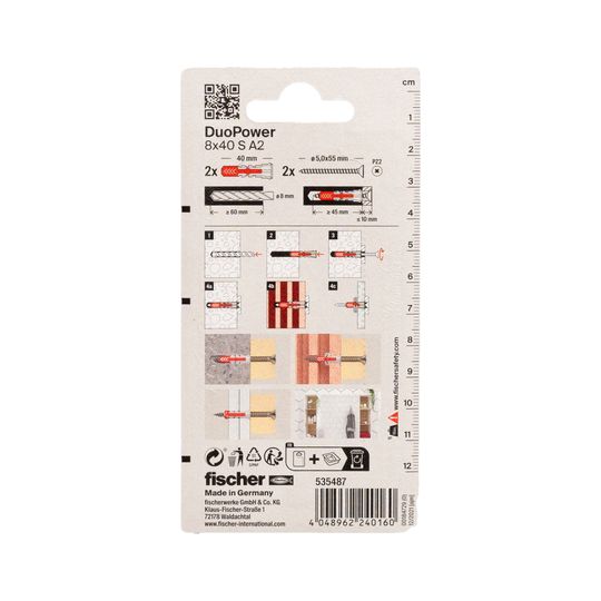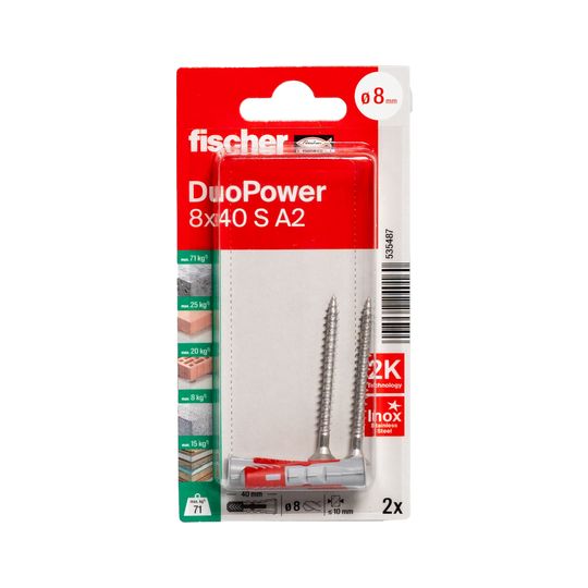 Dübel DuoPower S A2 Kunststoff,8x40,VE 2