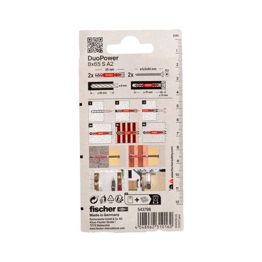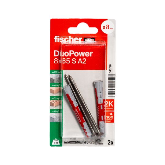 Dübel DuoPower S A2 Kunststoff,8x65,VE 2