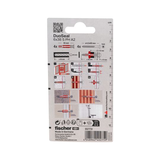 Dübel DuoSeal S PH TX A2 Kunststoff,6x38,VE 4