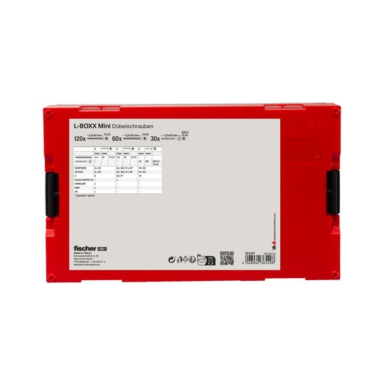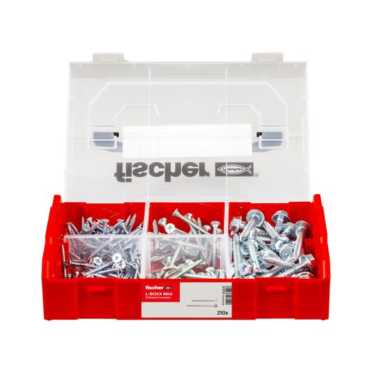 fischer; Bezeichnung: FIXtainer; Material Box: Kunststoff; Farbe Box: rot; Farbe Deckel: transparent; Ausstattung: Klick-Schließ-System,herausnehmbaren Trennelemente; Ausführung: DUOPOWER + Schraube; Inhalt: 120 x Schraube SZ 4,5 x 40 ZPF,60 x Schraube SZ 5,0 x 60 ZPF,30 x Schraube 6kt. 7,0 x 69 US T