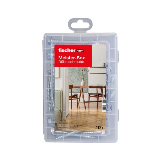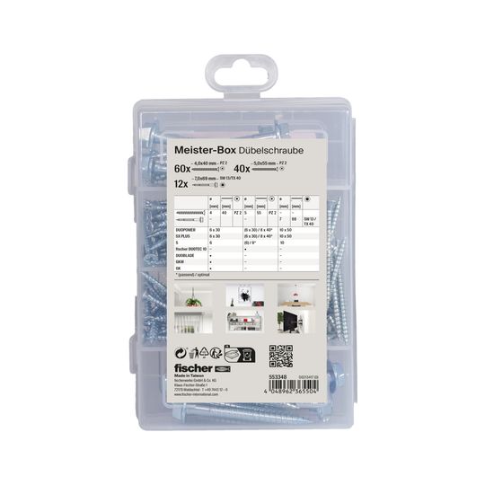 fischer; Bezeichnung: Meister-Box; Material Box: Kunststoff; Farbe Box: transparent; Farbe Deckel: transparent; Ausstattung: Klick-Schließ-System; Ausführung: DUOPOWER + Schraube; Inhalt: 60 x Schr...