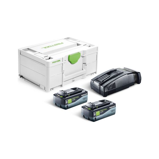 2 x Akkupack BP 18 Li 8,0 ASI, Schnellladegerät SCA 16, Systainer SYS3 M 187, im Karton