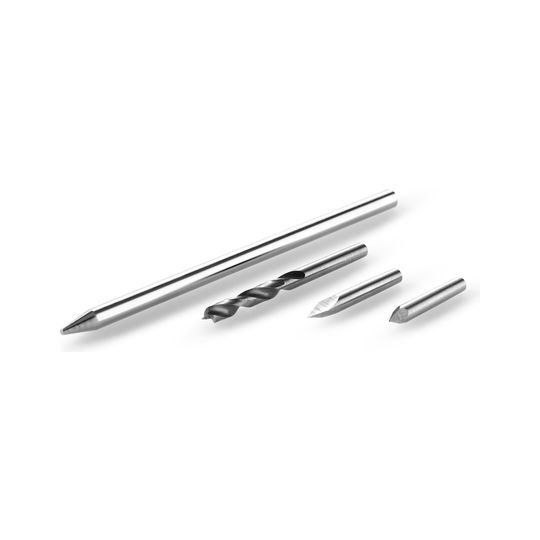 - Ersatzteilset mit konischer Zentrierspitze sowie extra langer konischer Zentrierspitze, konischem Zentrierbohrer (4 mm) und Austreiber für FB D 15-35 CE-Set (Artikelnr. 205749)