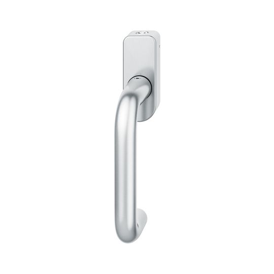 FSB Fenstergriff 34 1070; Material: Edelstahl; Vierkant: 7 mm; Befestigungsart: verdeckt verschraubt; Befestigungstechnik: mit Stütznocken; Lieferung: mit Vierkantstift,ohne Schrauben; Einsatzbereich: Drehkipp; Basis: Fenstergriff; Ausführung: abschließbar; DIN-Richtung: DIN Rechts; Nockendurchmesser: 10 mm; Sockelbreite: 32,5 mm; Sockelhöhe: 84,5 mm; Sockelstärke: 21 mm; Stift vorstehend: 24 mm; Befestigungsabstand: 43 mm; Funktion: Kippen vor Drehen unten rechts; Norm: DIN EN 13126-3; Oberfläche: fein matt; Farbton: edelstahl; Rastung: 90°; Griffform: U-Form; Anwendung: für nach innen öffnende Fenster und Fenstertüren; Grifflänge: 123 mm; Griffhöhe: 62 mm; Fensterwerkstoff: Aluminium,Kunststoff,Holz; Sockelausführung: mit Rosette