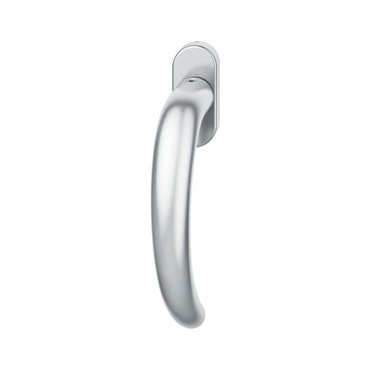 FSB Fenstergriff 34 1160; Material: Edelstahl; Vierkant: 7 mm; Befestigungsart: verdeckt verschraubt; Befestigungstechnik: mit Stütznocken; Lieferung: ohne Schrauben,mit Vierkantstift; Basis: Fenstergriff; Oberfläche: poliert; Farbton: edelstahl; Rastung: 90°,mit Kugelrastung; DIN-Richtung: DIN Links-Rechts; Einsatzbereich: Drehkipp; Anwendung: für nach innen öffnende Fenster und Fenstertüren; Griffform: gebogen; Grifflänge: 134 mm; Griffhöhe: 66 mm; Sockelausführung: mit ovaler schmaler Rosette; Sockelbreite: 27 mm; Sockelhöhe: 62 mm; Sockelstärke: 10 mm; Befestigungsabstand: 43 mm; Nockendurchmesser: 10 mm; Norm: DIN EN 13126-3,DIN 18267; Prüfung: RAL-GZ 607/9; Fensterwerkstoff: Aluminium,Holz,Kunststoff