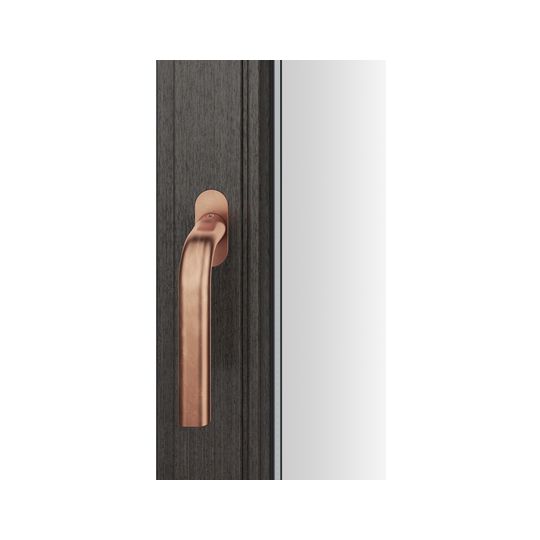 FSB Fenstergriff 34 1242; Material: Bronze; Vierkant: 7 mm; Befestigungsart: verdeckt verschraubt; Befestigungstechnik: ohne Stütznocken; Lieferung: ohne Schrauben,mit Vierkantstift; Basis: Fenstergriff; Ausführung: flächenbündig; Oberfläche: patiniert gewachst; Farbton: hellbronze; Rastung: 90°,mit Kugelrastung; DIN-Richtung: DIN Links-Rechts; Einsatzbereich: Drehkipp; Anwendung: für nach innen öffnende Fenster und Fenstertüren; Design: John Pawson; Griffform: gebogen; Grifflänge: 128 mm; Griffhöhe: 60 mm; Sockelausführung: mit ovaler schmaler Rosette; Sockelbreite: 25,5 mm; Sockelhöhe: 60,5 mm; Sockelstärke: 10,2 mm; Befestigungsabstand: 43 mm; Frästiefe: 13 mm; Norm: DIN EN 13126-3,DIN 18267; Prüfung: RAL-GZ 607/9; Fensterwerkstoff: Holz